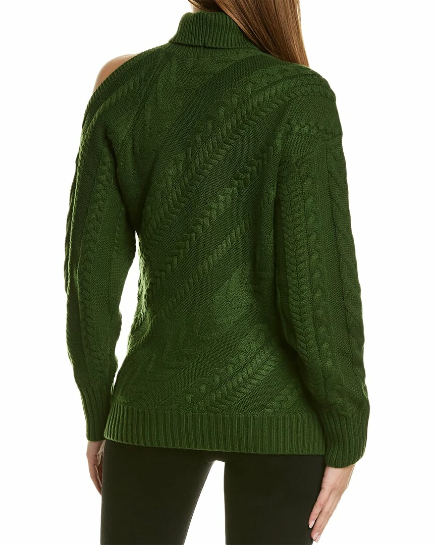 - Cableknit Wool-Blend Sweater In Douglas Fir With One Side Cold Shoulder And Turtleneck