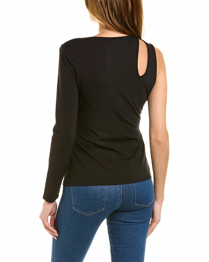 - Cutout Top In Black With One-Shoulder Style With Right Shoulder Padding And Cutout Left Shoulder
