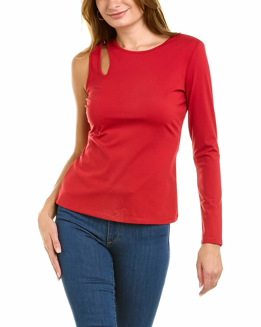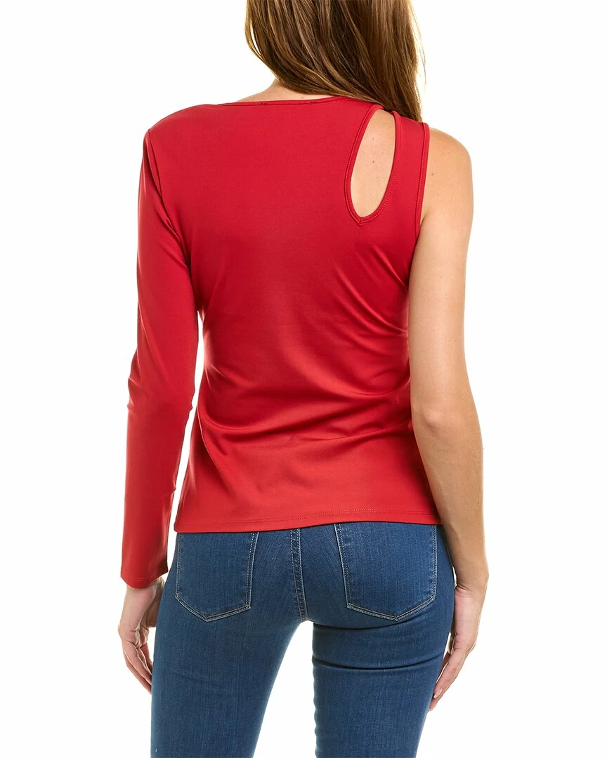 - Cutout Top In Brick Red With One-Shoulder Style With Right Shoulder Padding And Cutout Left Shoulder