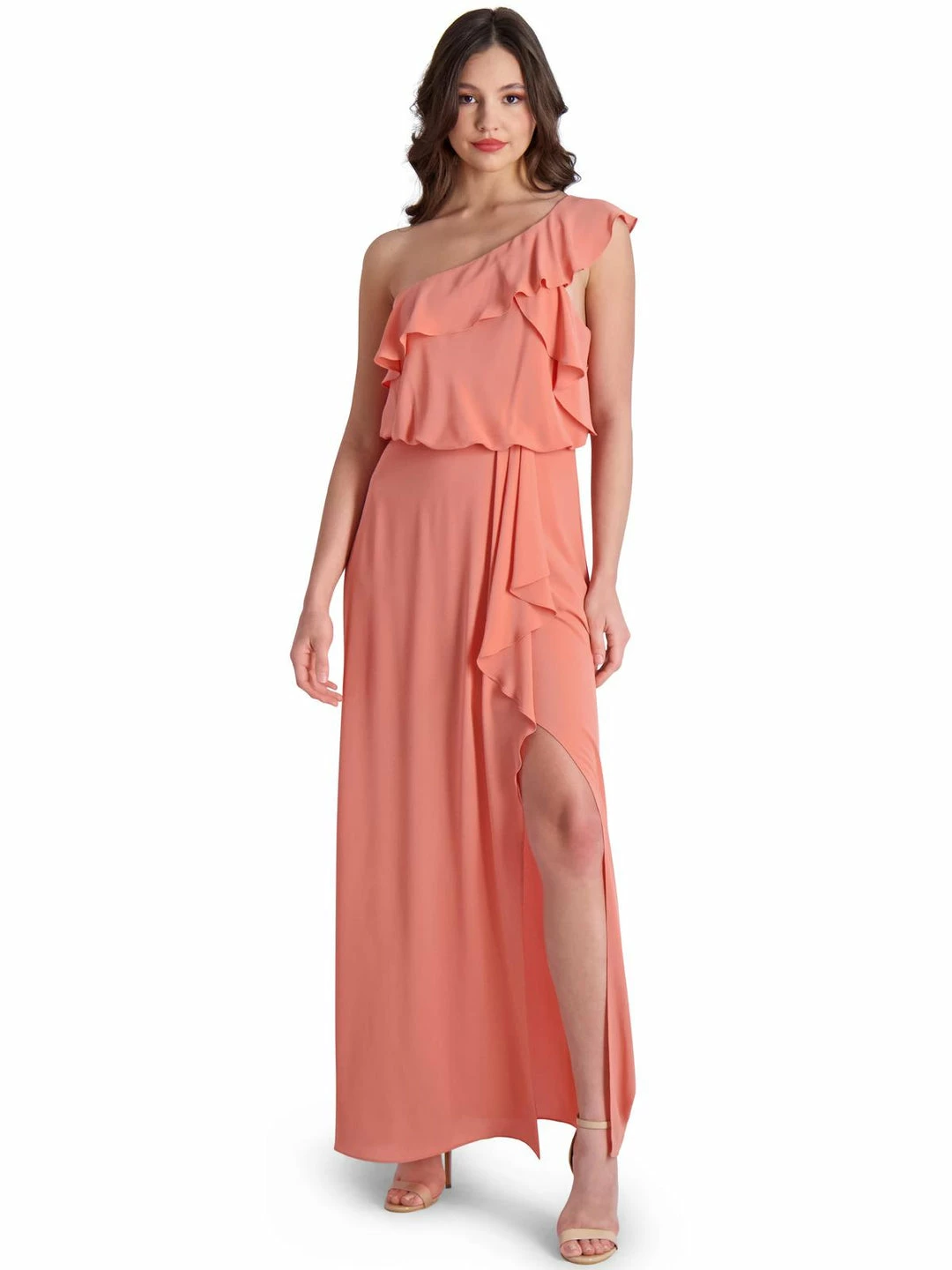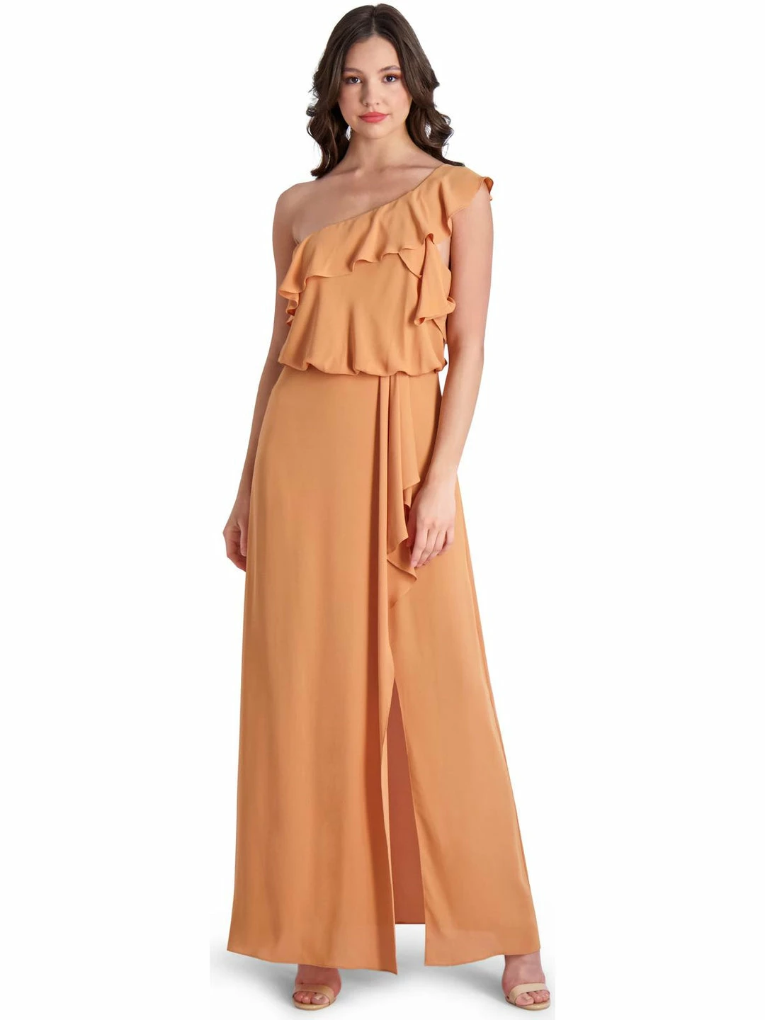 For the sophisticated woman who celebrates high fashion and evolving trends, BCBGMAXAZRIA always delivers top tier style and effortless elegance. Feminine ruffles and a one shoulder silhouette showcase a look that is pure elegance. It’s toga inspired roots are elevated with romantic ruffles and a stunning column silhouette. This ravishing look will dazzle at upcoming event or special occasion. This dress is guaranteed authentic. Model information – Height-5’11”, Hips-35”, Waist-24.5”, wearing a size 6