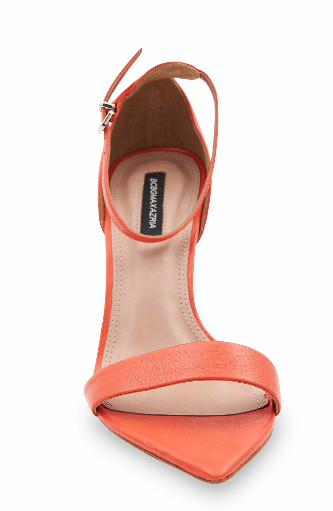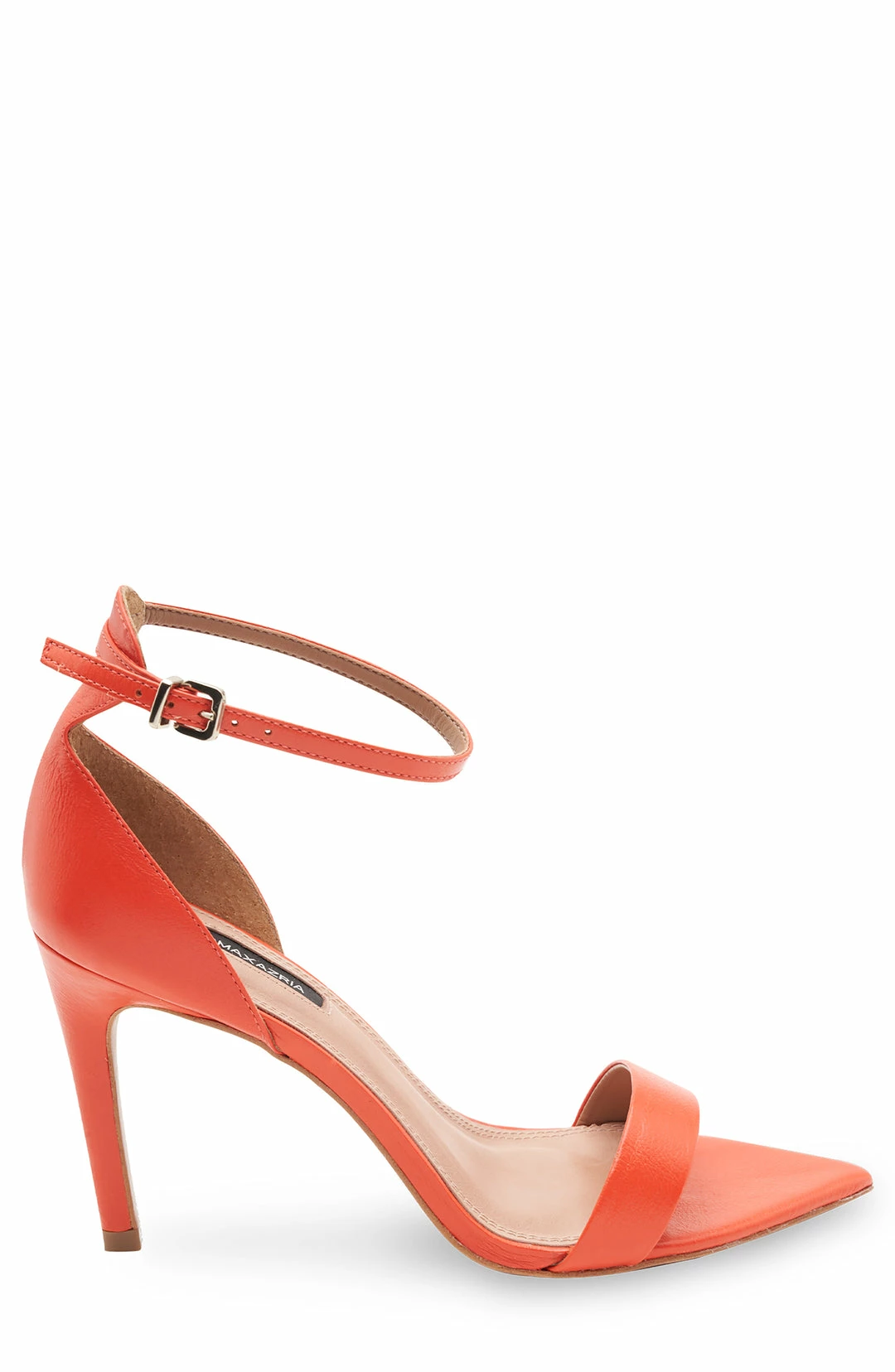 Classic evening sandal with a bold pointed open toe for a hint of edge. Topped with an adjustable buckle ankle strap. Complete with a stiletto heel.
