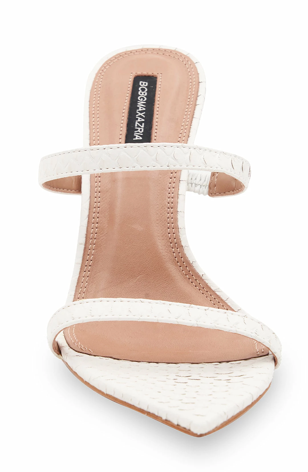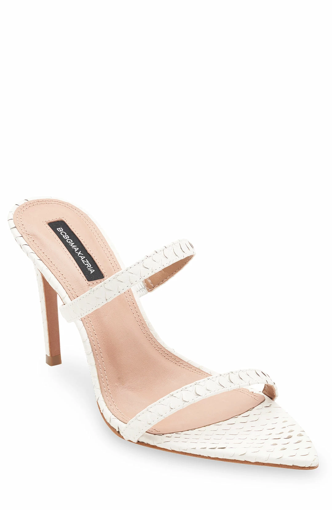 Stunning slip-on sandal with a bold pointed open toe. Finished with a sleek stiletto heel.