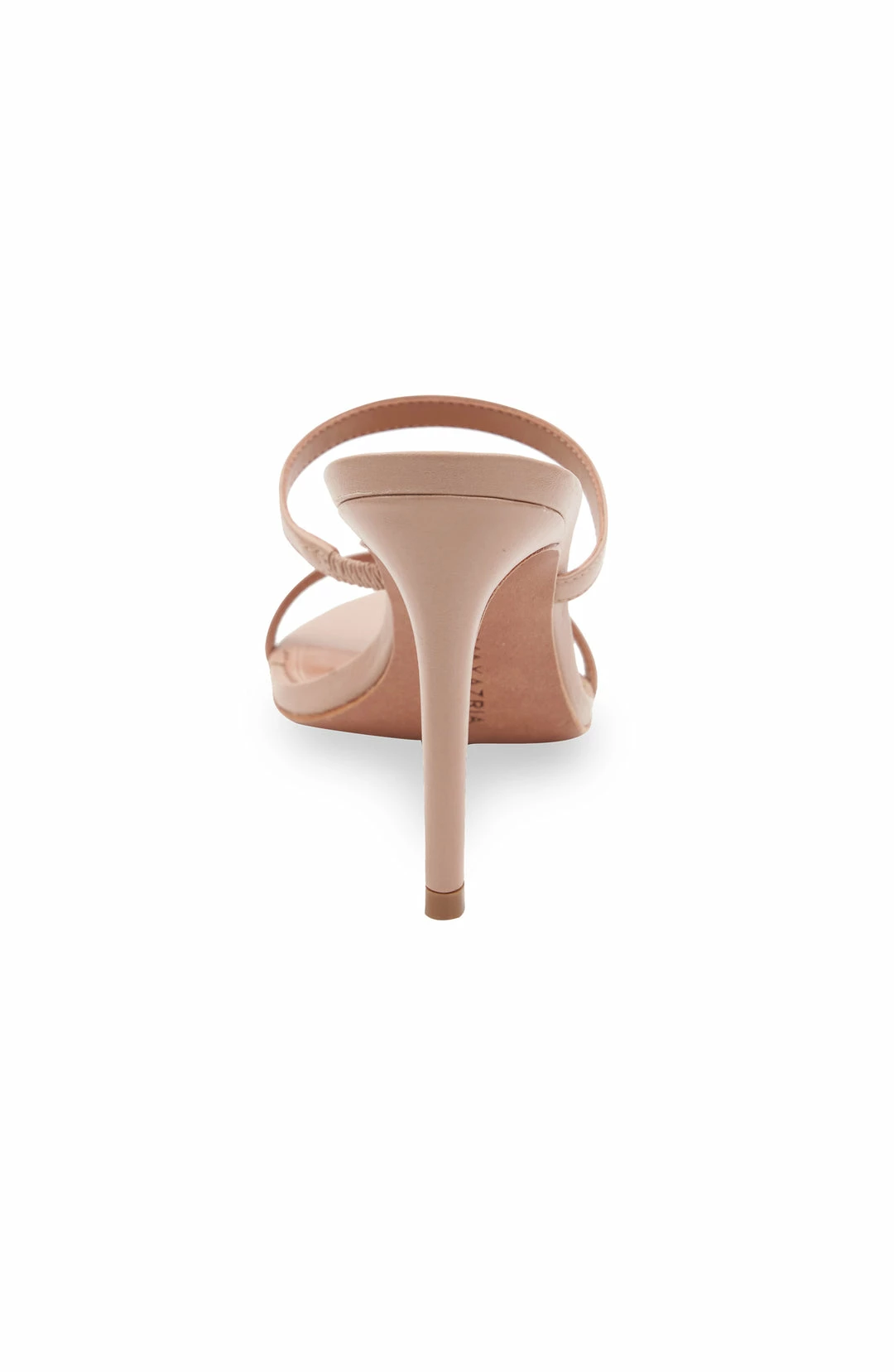 Stunning slip-on sandal with a bold pointed open toe. Finished with a sleek stiletto heel.