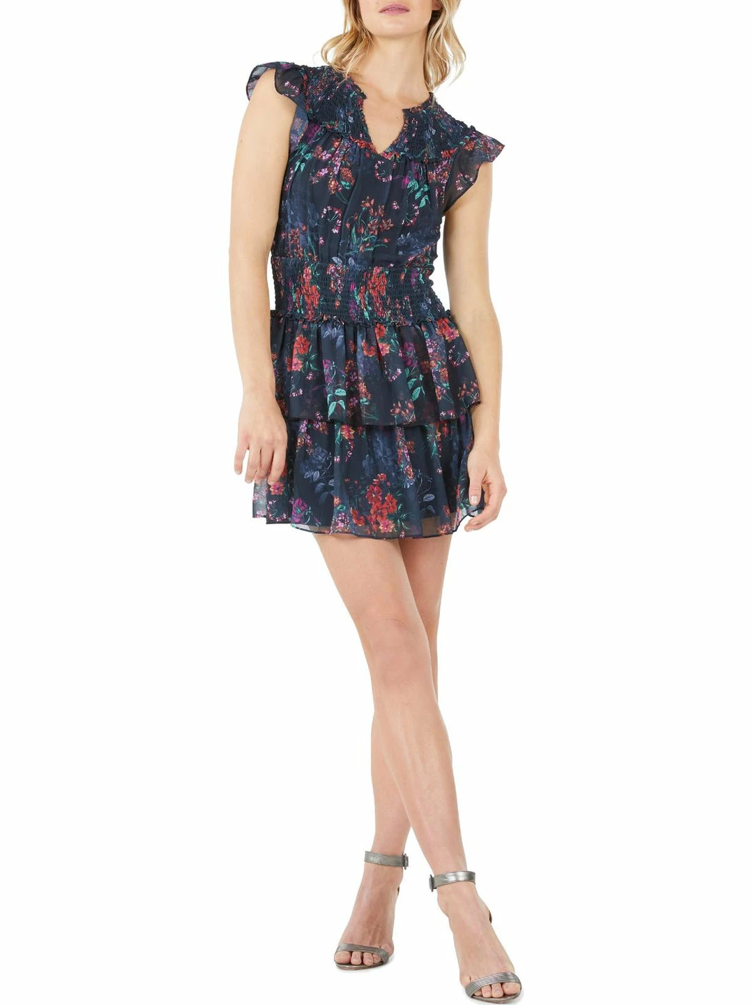 Meet the Ela floral print mini dress by BCBG Max Azria. Made with 100% Polyester. This dress features breezy fabric, blooming floral print, and smocked details. It’s ultra mini length will showcase your sun kissed skin and deliver springtime style. Features Pullover style.