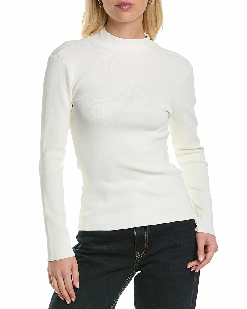 - Funnel Neck Sweater In White With Exposed Back