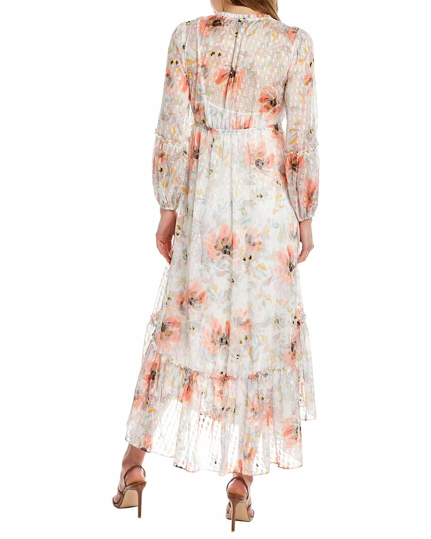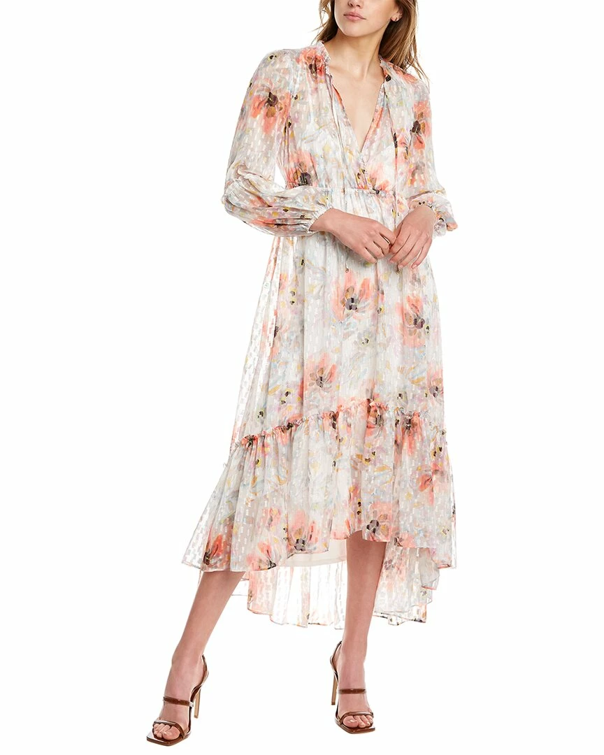 - High-Low Midi Dress In Blurred Watercolor With Elasticized Empire-Waist, Elasticized Cuffs