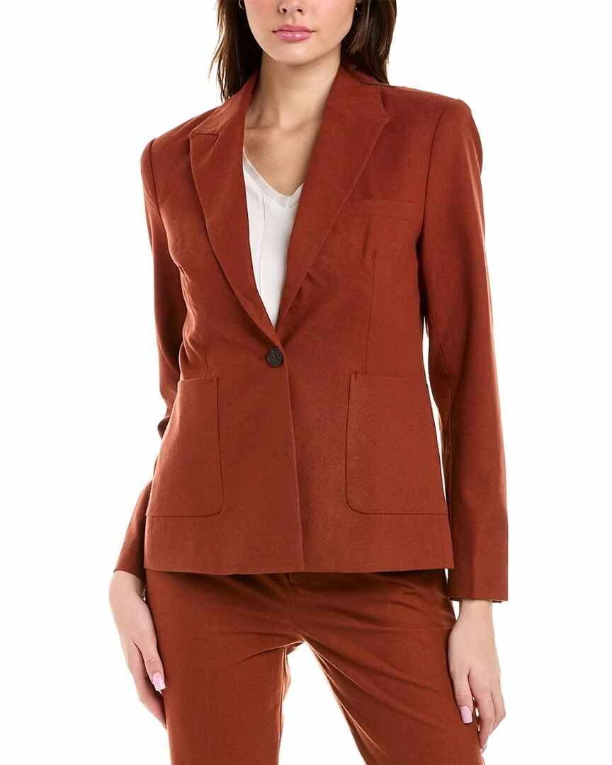 - Jacket In Rust With Peak Lapel, Left Chest Pocket, Two Front Pockets, Button Cuffs, And Center Vent At Back Hem