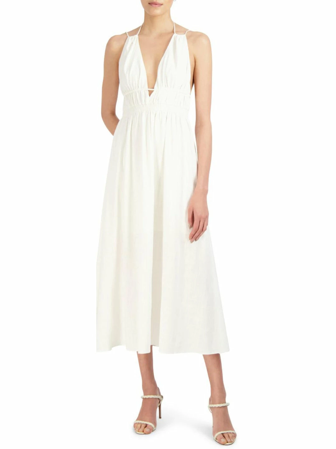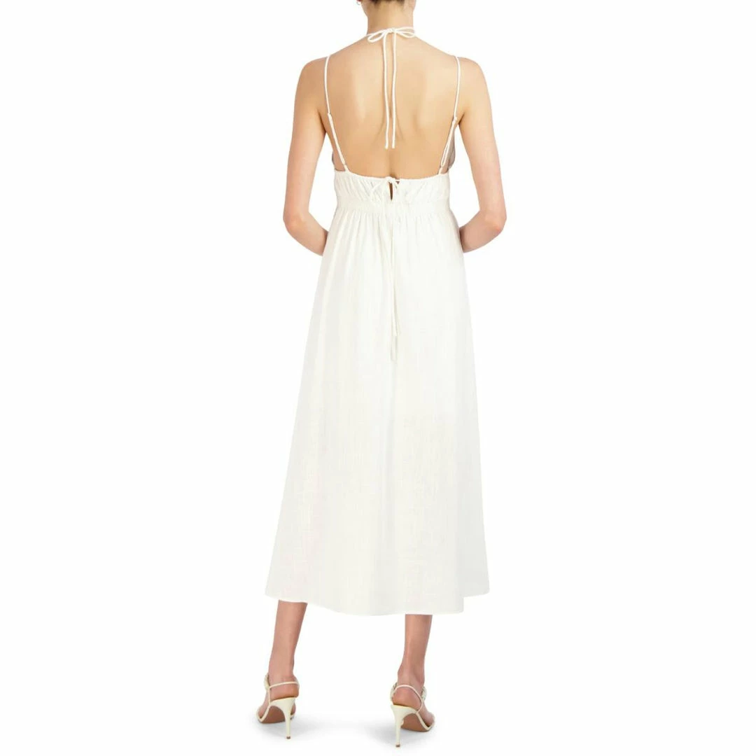 Step out in style in the Lorenza halter maxi dress by BCBG Max Azria. Made with 70% Rayon and 30% Linen. This dress’s linen blend fabric and maxi cut will keep you comfortable during warmer days. It features a slit halter neck on a sleeveless design and a tie closure.