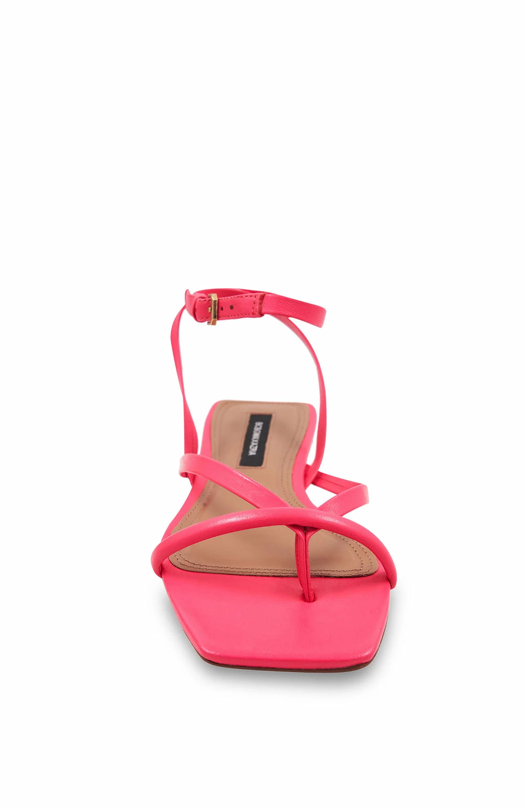 A chic weekend flat sandal in a simple strappy design. Crafted from leather with a square open thong toe and an adjustable ankle strap.