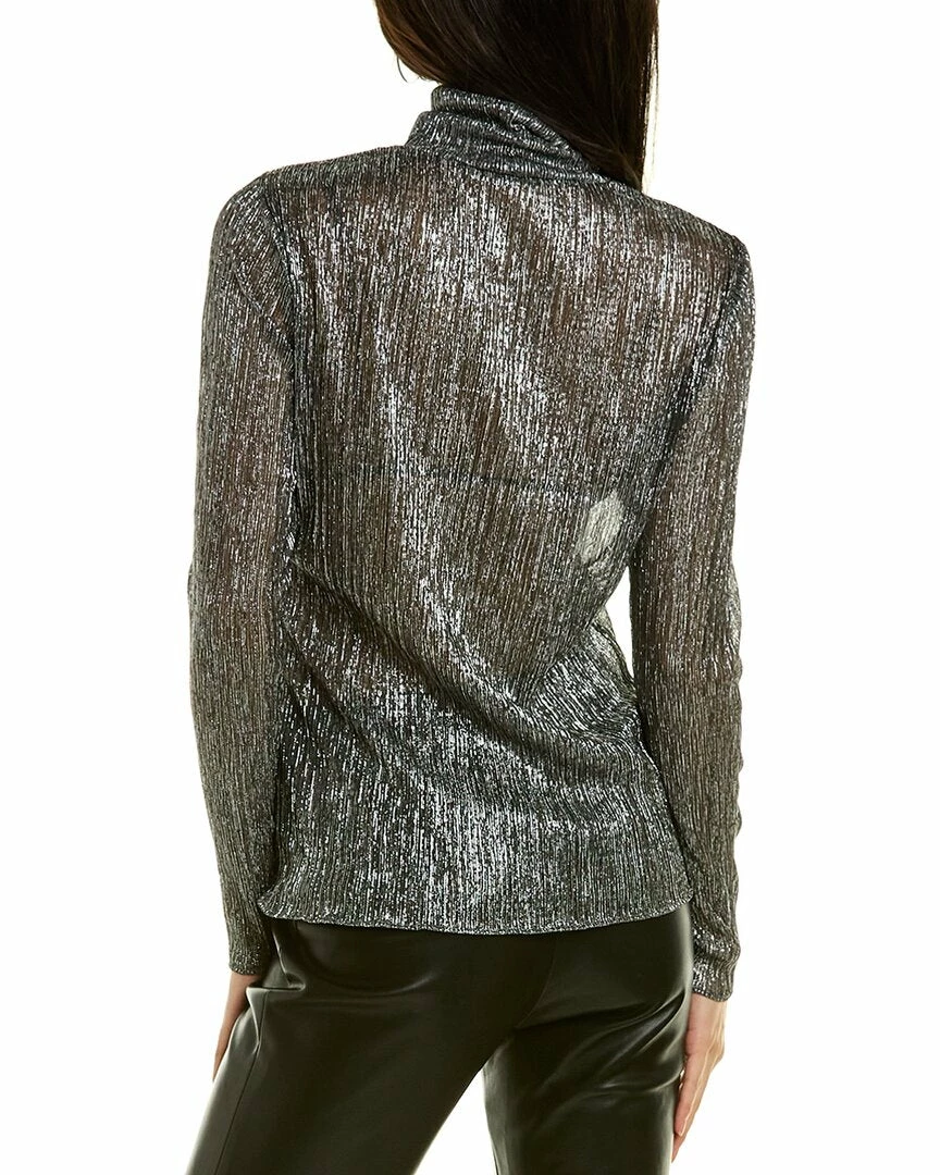 - Metallic Top In Gunmetal With Pleated Metallic Fabric And Turtleneck