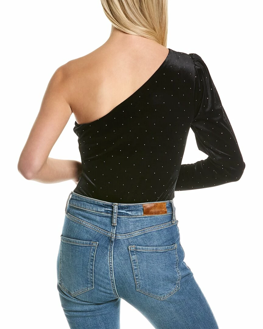 - One-Sleeve Bodysuit In Black With Velvet Design And Beading