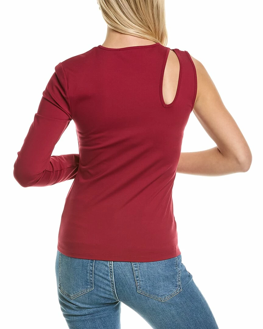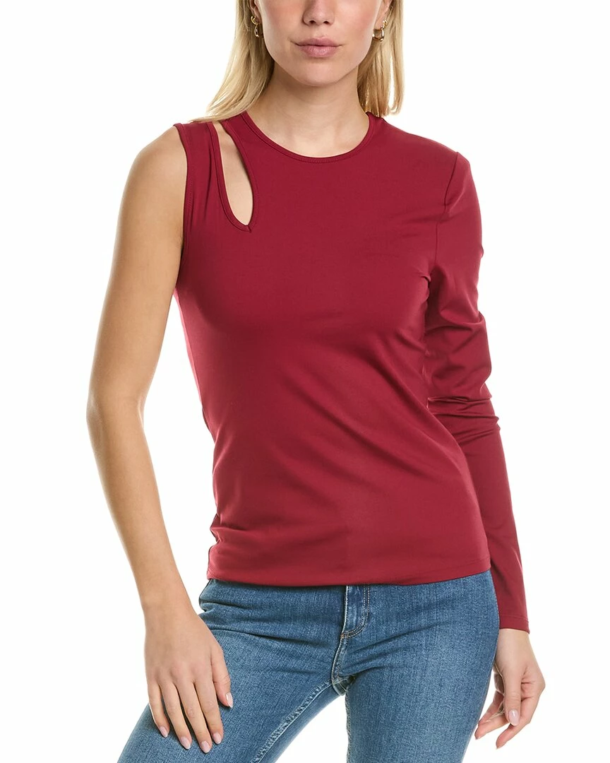 - One-Sleeve Top In Red With Right Shoulder Cut-Out