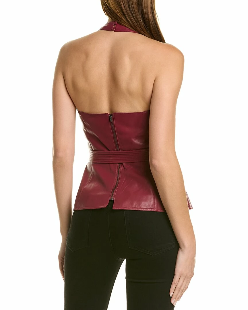 - Peplum Halter Top In Rhubarb With Faux Leather Design And Tie At Waist