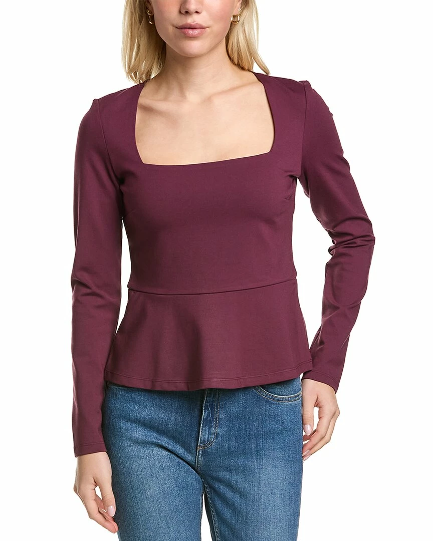 - Peplum Sweater In Wine With Square Neck