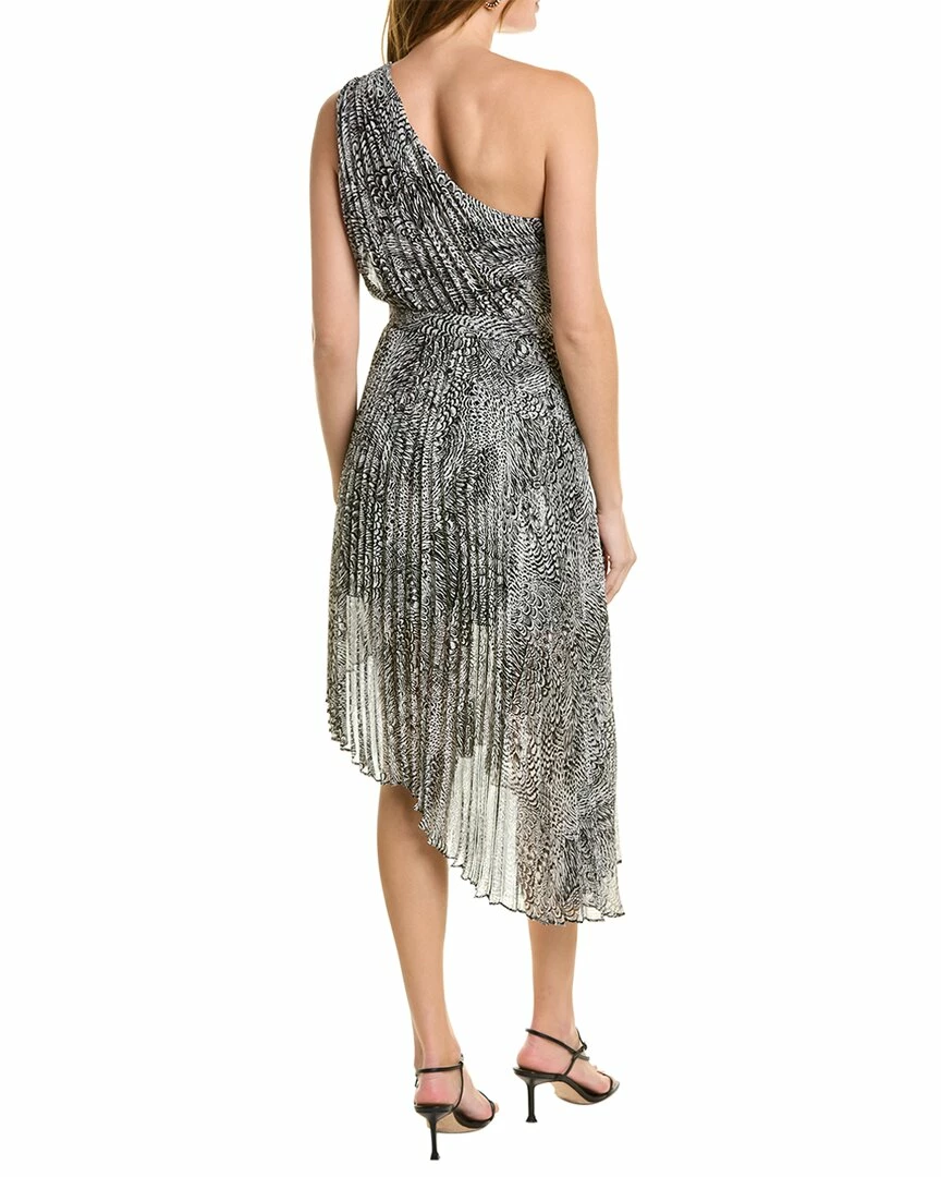 - Pleated Dress In Black And White Combo With One-Shoulder Design
