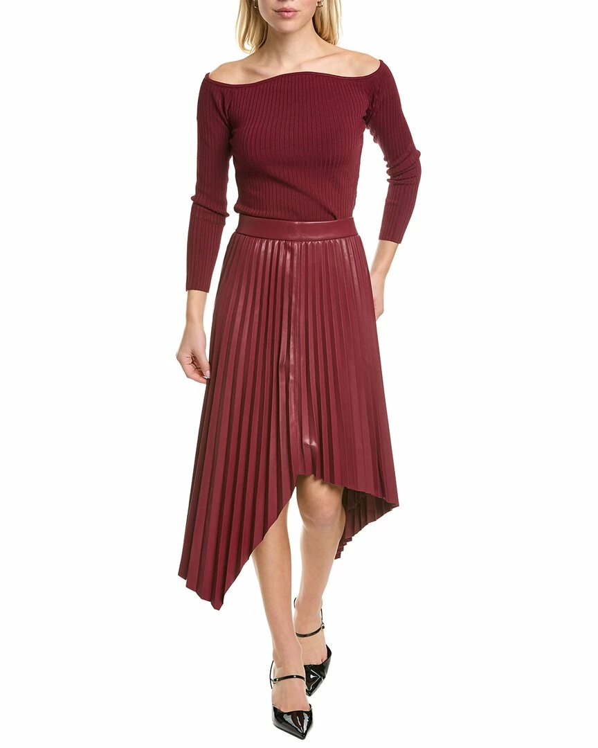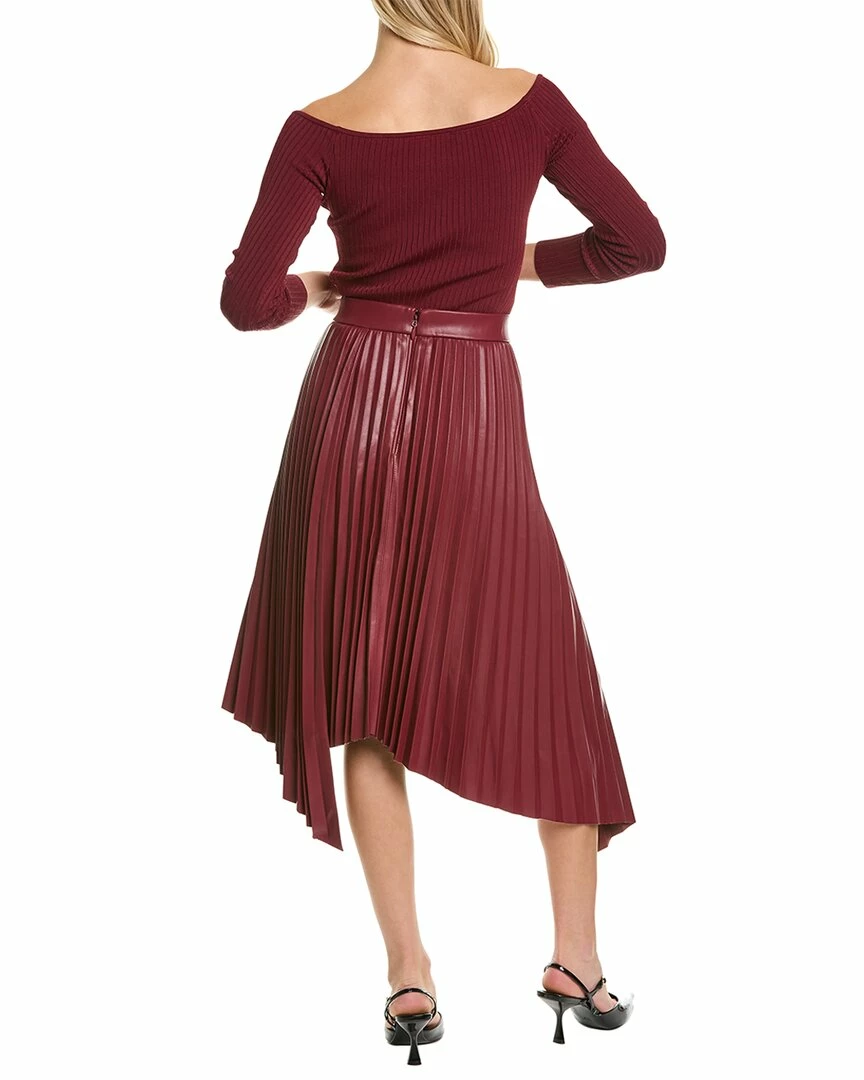 - Pleated Midi Skirt In Wine With Faux Leather Design