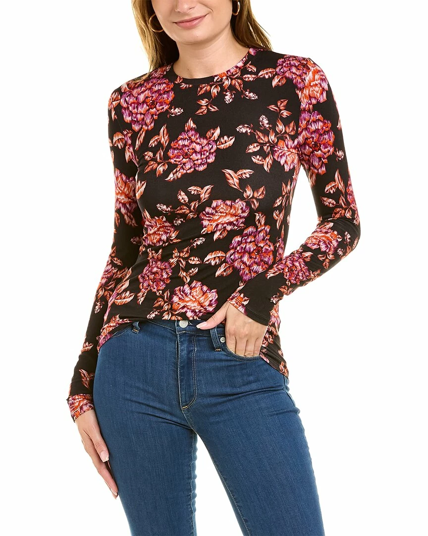 - Printed Top In Black Multicolor With Crewneck