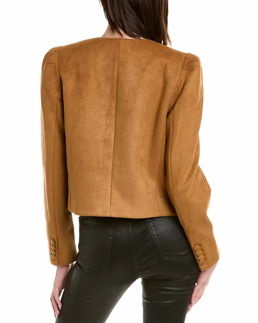 - Puff Sleeve Jacket In Camel With Faux Suede Design And Two Front Pockets