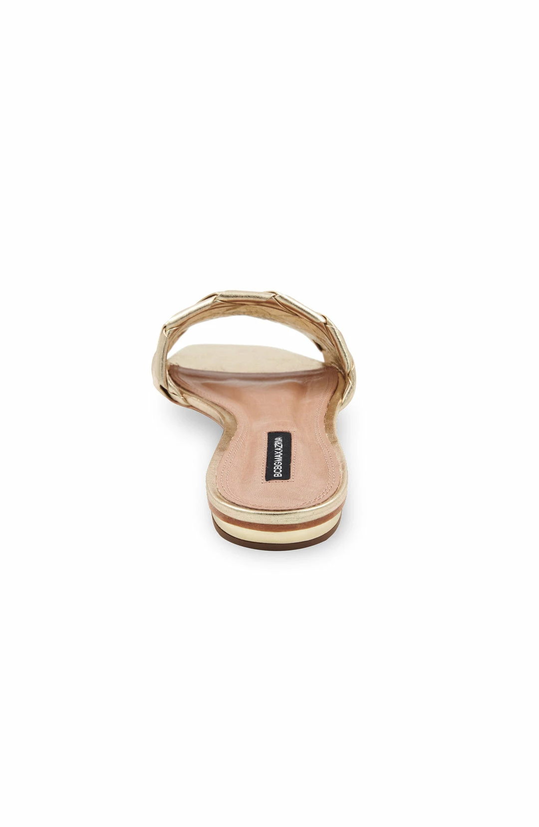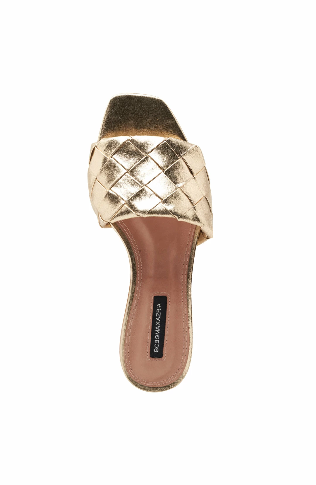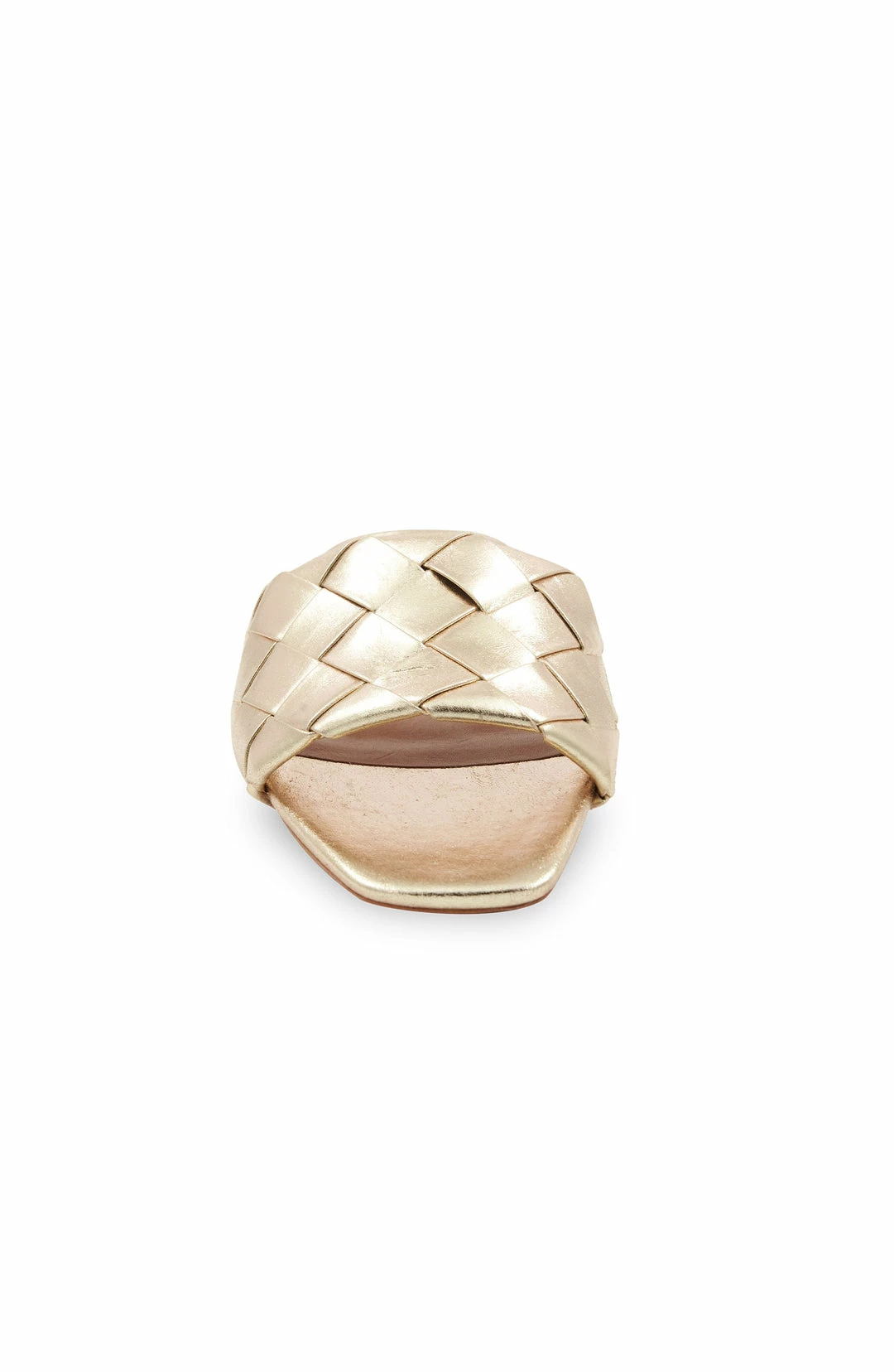 Chic, wear-anywhere flat slide in a modern square toe silhouette. Crafted from smooth leather in a sophisticated basketweave pattern.