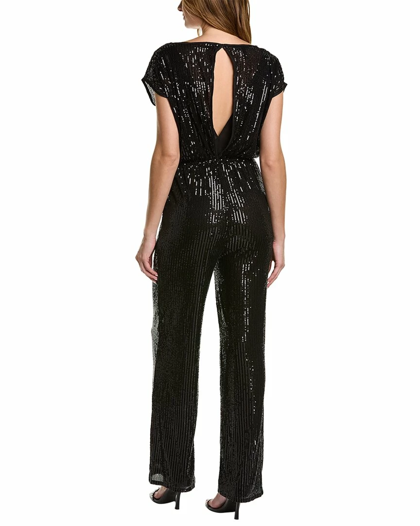 - Sequin Jumpsuit In Black With Vented Back And Elasticized Waist