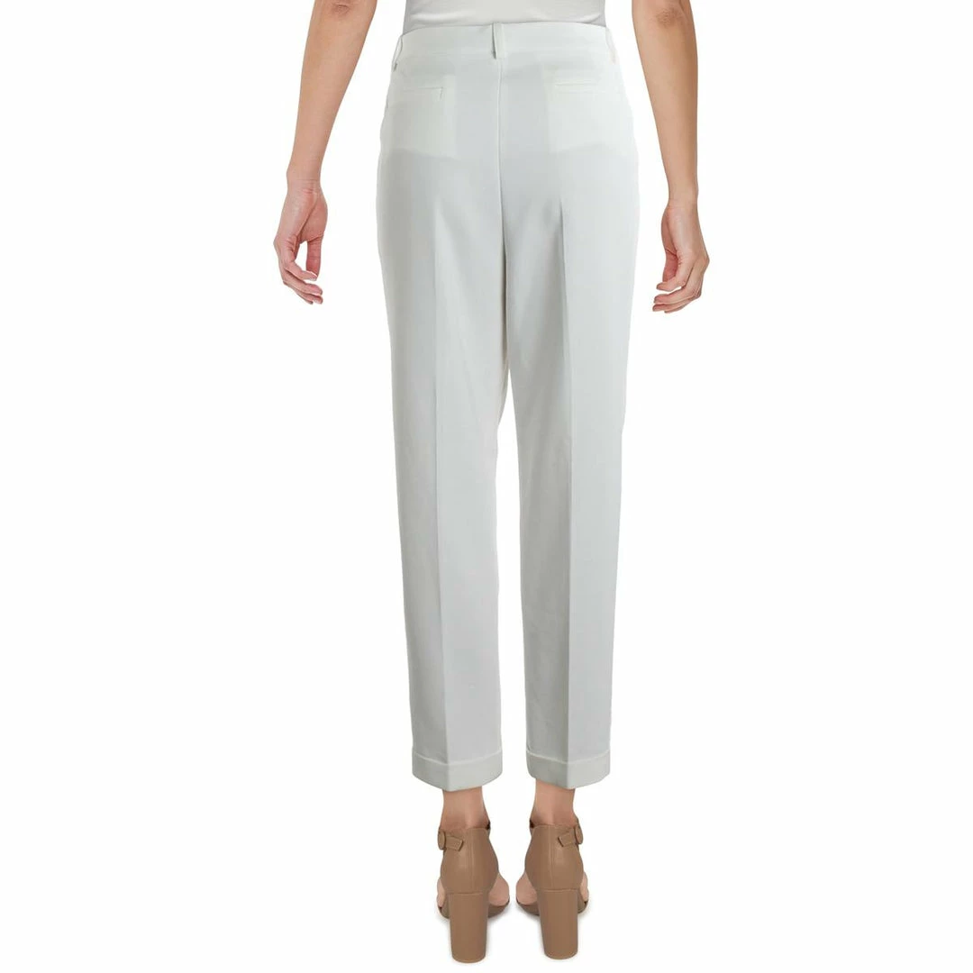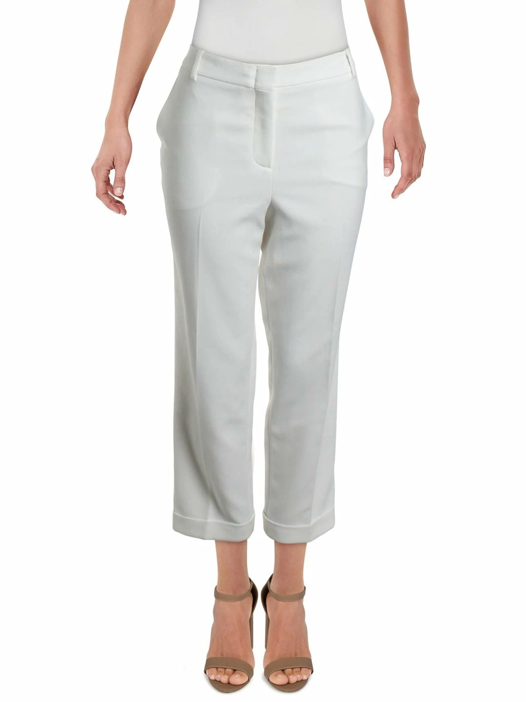 Elevate your look with these cropped straight leg pants by BCBG Max Azria. Made with polyester, rayon, and spandex. The cropped design and sharp straight leg construction will make these a essential for your professional wardrobe. They feature a mid-rise construction and two front slash pockets. Wear them with your favorite pumps to complete this modern, sophisticated look. Hook/Bar Zip Fly. These pants are guaranteed authentic.