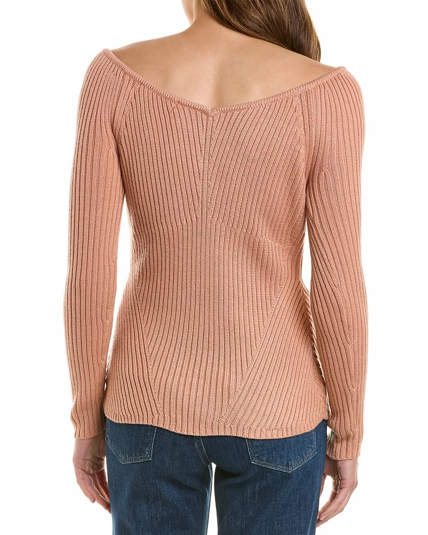 - Wool-Blend Sweater Top In Peach With Geometric Stitching